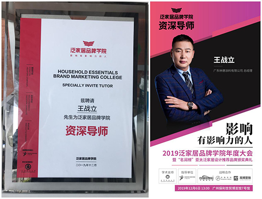 在家居行業急速變革的潮流中,任何戰略都可能成為決勝的關鍵。在時代中探索新的發展方向、把握發展機遇、穩固發展勢頭,廣東林德涂料有限公司總經理王戰立先生發揚拼搏進取精神,為企業與行業的穩健發展做出了卓越貢獻。在泛家居品牌學院2019年度大會上,被大會授予“資深導師”稱號,就是行業對王戰立先生的最好褒獎。