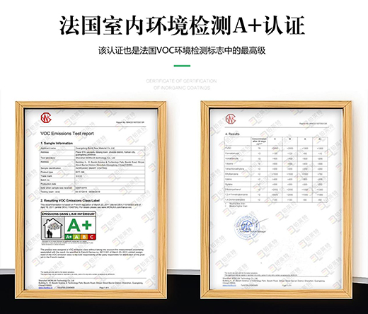 2019年,鉑英特所有產品均通過了國家涂料產品質量監督檢驗中心的相關檢測,其中公司的無機智能涂料的“室內空氣凈化功能涂覆材料凈化性能”檢測結果為“甲醛凈化性能效率”達到89.2%,