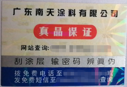在鑒別假冒偽劣產品上,南天涂料的每桶產品都有對應的防偽標簽,桶身有二維碼掃描確認,其次可以進入南天涂料官網在線查詢或是撥打南天涂料公司服務電話查詢。