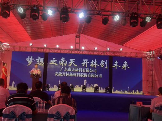 2020年9月6日,以“夢想之南天 開林創未來”為主題的廣東南天涂料有限公司與安徽開林新材料股份有限公司的合作簽約儀式暨南天涂料華東區生產基地啟動慶典在安徽省天長市銅城工業園區盛大舉行!