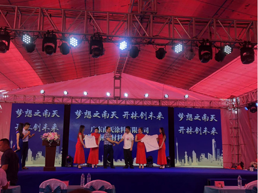 活動當天,雙方企業代表親臨現場,在受邀嘉賓及媒體記者的共同見證下,開林新材料股份有限公司王總和廣東南天涂料有限公司祝總互換簽名T恤并合影留念,此舉拉開了南天涂料與開林新材料雙方深度合作的序幕,同時也標志著南天涂料華東區生產基地正式啟動。