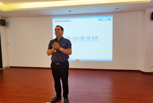 隨后,總經(jīng)理助理譚小燕聽完各大區(qū)的匯總工作也在會上做了分享,她對各區(qū)的銷售工作給予了充分肯定,這得益于所有南天人有策略、有狼性、穩(wěn)定有序的搶抓營銷進度。并期待各位南天人繼續(xù)前行,在下一季度斬獲更多客戶的信賴和支持。