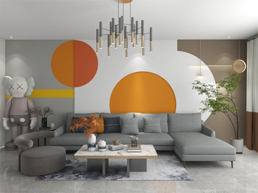 該設計風格適用于臥室、客廳、餐廳等場景;其色彩鮮明變幻,適用于北歐、現代輕奢、新中式等裝修風格;搭配精致軟裝、燈飾以及配套家具,突出簡約時尚,去繁化簡的裝飾理念。