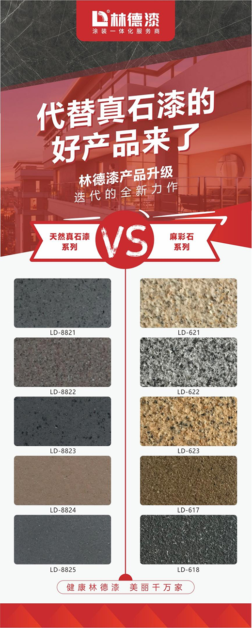 林德漆作為國內(nèi)知名的“涂裝一體化服務商”,不僅提供專業(yè)的施工服務,而且在產(chǎn)品研發(fā)方面也持續(xù)發(fā)力、不斷創(chuàng)新。近期在麻彩石及巖彩石兩款新品的研究方面,林德技術(shù)團隊通過多次對比及反復實驗,最終取得成功。林德漆新產(chǎn)品——麻彩石運用多彩的技術(shù),實現(xiàn)并超越真石漆的涂裝效果!同時,林德漆麻彩石解決了真石漆易掛灰、發(fā)花、接茬、施工難度大等問題,還克服了多彩產(chǎn)品生產(chǎn)效率低的問題,完美契合新材料、新技術(shù)的發(fā)展趨勢,更貼合國家環(huán)保要求,是真石漆的完美替代者!而巖彩石則是傳統(tǒng)巖片漆的升級產(chǎn)品,不僅在耗材方面大大降低,而且在保色性及施工性方面也遠遠超過傳統(tǒng)的巖片漆產(chǎn)品。