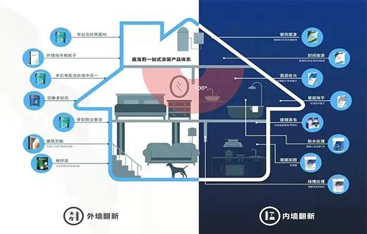 該戰(zhàn)略指的是由外及里,從底到面,產(chǎn)品全覆蓋,并采用標(biāo)準(zhǔn)化服務(wù),為消費(fèi)者解決家庭涂裝問題,包含完善的一站式涂裝產(chǎn)品體系和服務(wù)兩大核心。