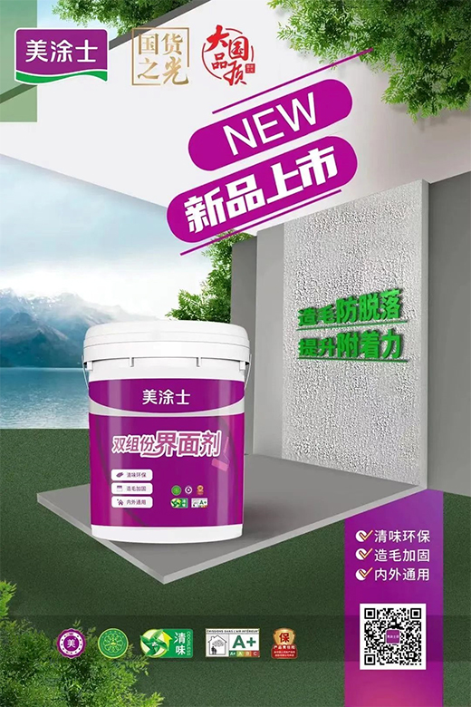 在眾多新品中,雙組份界面劑的問世,也是美涂士本次防水輔料新品發布會的重磅代表之一。可適用于天花吊頂、內外墻的膩子或抹灰層的脫落,同時適應于石膏板、預制墻、鋁膜墻和外墻的相關施工環境,具有清味環保、造毛加固、內外通用等特點。在顯著提高基面附著力的同時,還具有免點銹的功能,適應多鐘不同的施工條件。