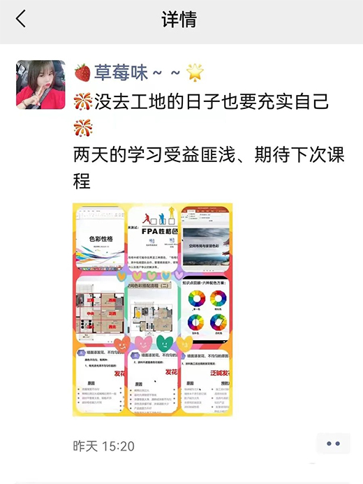 雖說是線上培訓,但課堂氣氛絲毫不亞于線下課堂,大家積極地透過屏幕與老師互動交流,課成結束后紛紛在朋友圈曬圖發表學習的感悟和心得,表示受益匪淺。