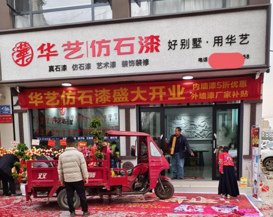 華藝仿石漆大理祥云縣店的開業,是華藝涂料深耕西南市場的重要一步。從店面選址、裝修設計到開業籌備,華藝總部全程提供專業幫扶,確保店面以最佳狀態呈現給消費者。