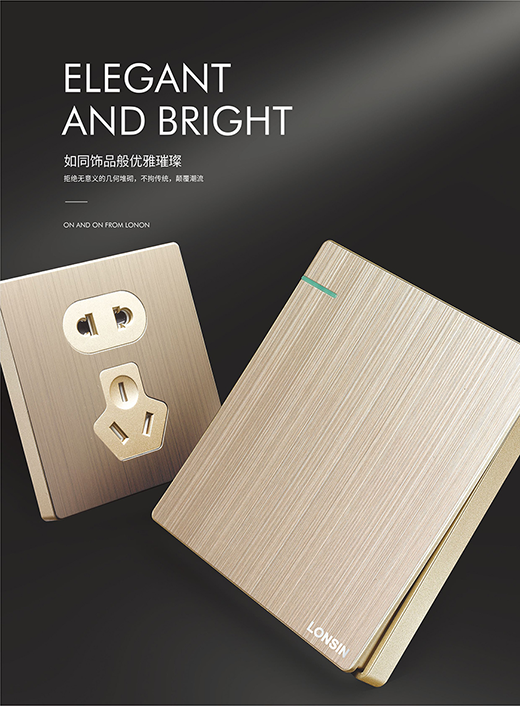 “LONSIN朗絢”電氣品牌的開關(guān)插座產(chǎn)品,從外觀、性能、使用壽命上,都占有巨大優(yōu)勢(shì)。“LONSIN朗絢”開關(guān)插座產(chǎn)品的外觀設(shè)計(jì)簡(jiǎn)約,適用于各類裝飾風(fēng)格的建筑,為你的個(gè)人空間錦上添花。采用大面板、大按鍵,高檔大氣。產(chǎn)品面板采用有效抗氣泡、抗劃痕的材質(zhì)制成,外觀表面光潔平滑,色彩均勻有質(zhì)感;反弧曲面立體開關(guān)按鍵,手感輕柔順滑,滿足你視覺觸覺的雙重享受。