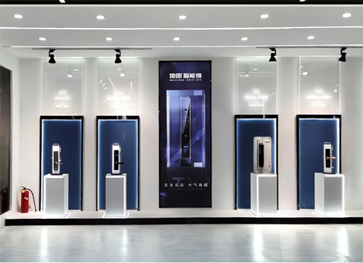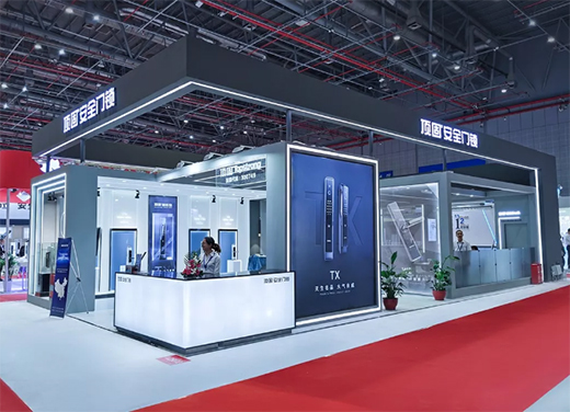 頂固展館設(shè)計(jì)極富科技感,內(nèi)設(shè)有智能鎖及機(jī)械門鎖藝術(shù)展示區(qū),具頂固特色的精品門鎖讓觀展者駐足停留,進(jìn)行深度交流與體驗(yàn)。