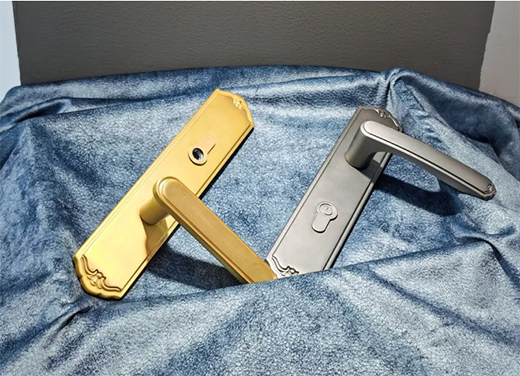 來到傳統(tǒng)機(jī)械鎖展示區(qū),整面的展墻上陳列了不同系列的新品門鎖,展示的門鎖產(chǎn)品,風(fēng)格多樣,材質(zhì)高端、配色時(shí)尚,不禁讓人眼前一亮。