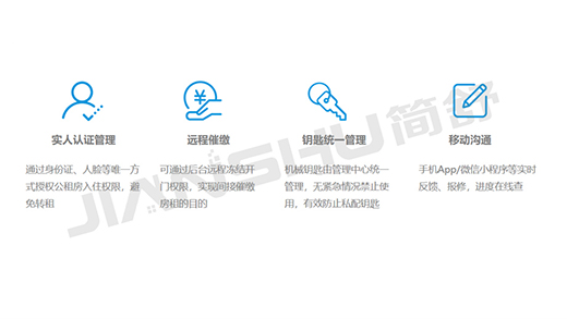 亮點6:移動溝通,手機APP、微信小程序等實時反饋、報修、進度在線查,給租客提供方便的日常服務。