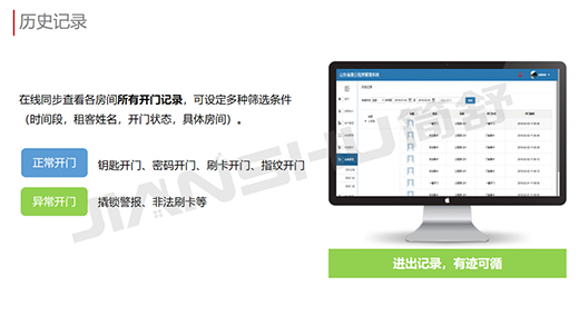 亮點15:歷史記錄,在線同步查看各房間所有開門記錄,可設定多種篩選條件,如時間段、租客姓名、開門狀態、具體房間等。