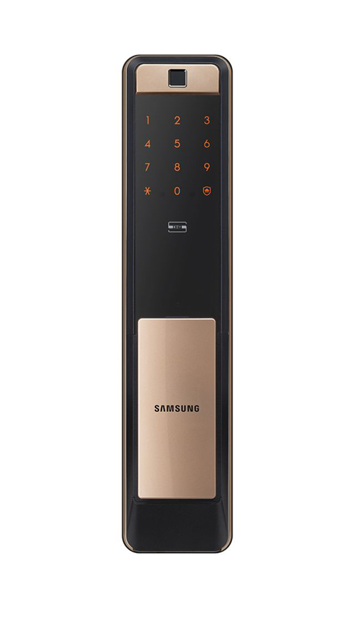 三星智能鎖P72延續品牌簡約時尚的風格,采用高端家電級噴漆工藝,鎏光金和天幕銀搭配黑色的外觀,加上流線型的鎖身,給人一種端莊優雅的感覺。與其它智能鎖的開門方式不同,三星智能鎖P72契合了當代的流行趨勢和用戶使用習慣,采用推拉式的把手設計,既解決了手上提東西開門的不方便問題,也把產品的外觀變得很酷炫、十分受人喜愛。
