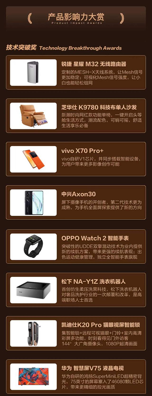 凱迪仕K20 Pro貓眼視屏智能鎖憑借科研及技術實力助力美好生活體驗,榮獲“產品影響力大賞-技術突破獎”,一舉摘得兩項桂冠,實力演繹雙倍值得。