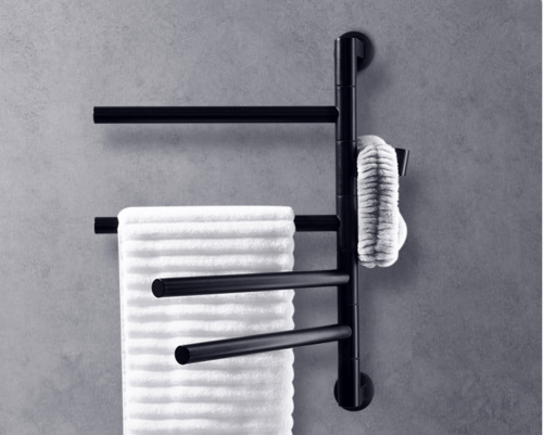 這還不僅僅只是一個電熱毛巾架,在豐富的配件的加持賦能下,它可以滿足我們更多的收納需求。比如搭配旋轉掛鉤,小面巾、發帶、配飾等小物就可以隨手收納;搭配儲物盒,可以為洗澡沐浴時取下的眼鏡,手機等提供擱置場所,洗澡后需要取用的身體乳、護膚品等也輕松觸手可得,讓浴室環境更整潔有序。