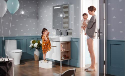 衛生間在使用熱水時難免會起霧氣,防霧功能至關重要。科勒親悅鏡柜的鏡面配備防霧功能,使鏡面能適應浴室潮濕環境,免受霧氣干擾,時刻保證照鏡清晰,讓使用者無論何時都能享受舒適的照鏡體驗。此款鏡柜的設計也十分人性化。鏡門采用圓角設計,可有效避免家中兒童、長者在使用時碰傷、擦傷,讓使用者更安心。另外,如有需要可額外選配兒童鏡,使鏡面延展至更低處,兒童也可輕松照鏡,滿足家庭的個性化需求。