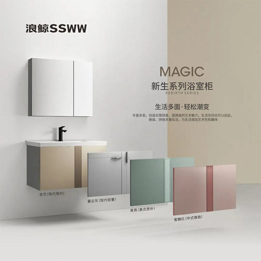 生活多面,輕松潮變。2022浪鯨衛浴爆款新品Magic-新生系列,重構全衛空間定義,全新演繹微定制時代,實現一款浴室柜,多重風格自由變裝。