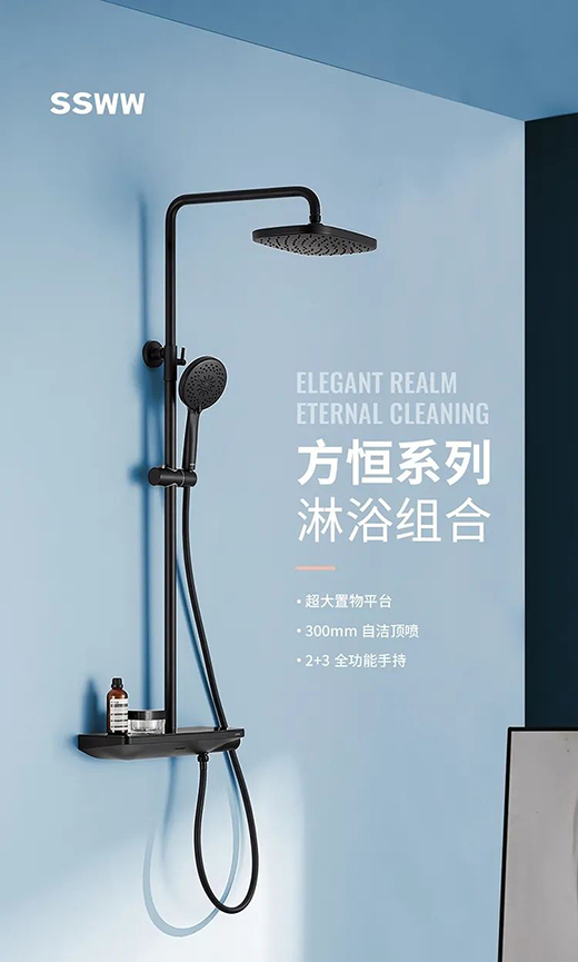 超大置物平臺,一次放下沐浴所需的洗漱用品,300mm自潔頂噴,任肆意灑下的水流拍打身軀,清爽潔凈 健康舒心,創新一體式控制手輪,三種出水模式與冷暖水溫,一手掌控 隨心所浴,有限的空間擁有無限的可能,浪鯨衛浴,為你的美好夏日生活,增添一點幸福指數。