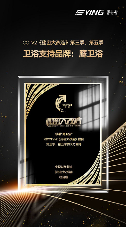 “以匠心,暖人心”是《秘密大改造》的主題,也是鷹衛(wèi)浴多年來(lái)一直堅(jiān)持的使命——以匠心不斷創(chuàng)新更多的潔凈健康的衛(wèi)浴產(chǎn)品。