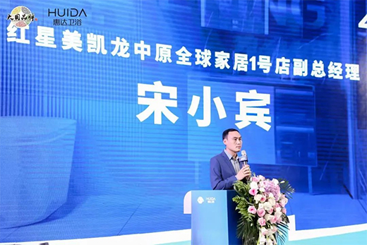 開業儀式上,紅星美凱龍中原全球家居1號店副總經理宋小賓發表了重要講話,他說:“非常榮幸能夠見證首家7.0智能定制體驗店落戶鄭州。多年來,與惠達衛浴的合作中,我能感受到她“寧砸千萬件,不售一次殘”的理念,以及“恩澤一地,惠達八方”的企業宗旨,尊重合作伙伴,注重消費體驗。希望以后從營銷推廣到品牌賦能,紅星美凱龍與惠達用共同的力量,服務好每一位消費者。”