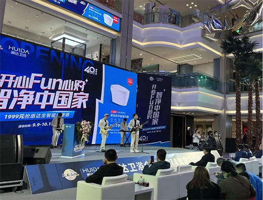 在全體人員的見證下,諸位嘉賓們一同上臺剪彩,共同開啟新篇章?;葸_衛浴鄭州7.0智能定制體驗店還為來到現場的消費者們準備了樂隊演出,并設置了搶購、開業酬賓禮和幸運砸金蛋等活動,現場熱鬧非凡,讓鄭州消費者切實感受到大國品牌的溫度和高品質衛浴產品的魅力。