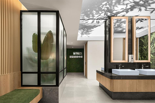 “以前的衛生間沒有這么舒服,然后很小,現在感覺很溫馨,還可以坐在這等孩子,也不用擔心”“我根本不敢想象。就是說新華書店廁所能做到這個份上”別具一格的公共衛生空間設計風格是本次改造項目收到的最多討論,恒潔“這空間很中國”公共空間改造項目每一站都會邀請國內知名設計師針對空間進行定制化的改造方案,重慶站改造邀請《夢想改造家》明星設計師賴旭東加持。