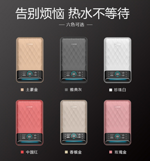 華范速熱式電熱水器H10系列在“顏值”上擁有最流行的六種可選顏色,款式新穎多樣,總有一款讓你“一見鐘情”