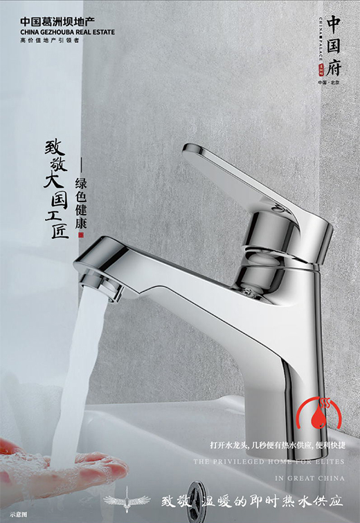 在熱水使用的層面上,葛洲壩北京中國府,洞察到了高端人群對熱水使用的新需求和新標準,因此在生活用水層面,研究并使用了 [ 即時熱水供應系統 ] 的科技系統。