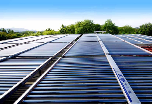 將太陽能設置在樓頂,集中集熱,采用真空管集熱器,使太陽能耐冰凍、集熱快、保溫好;同時在高層商品房的地下三層,設有大型儲水箱儲存熱水,這就保證了多戶同時使用的情況下,熱水仍然能穩定供應,拒絕出現熱
