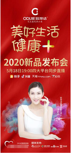 特殊時期,活動行業原有的格局被打破,但往往危機隨之而來的就是轉機,疫情當下,新的傳播機遇應運而生——“線上發布”。2020年5月18日,北京時間19:00 ,廣東歐帝潔科技有限公司“美好生活健康+2020新品發布會”驚艷亮相,本場發布會采用當今潮流的線上發布形式,為屏幕前的全球觀眾帶來一場科技與時尚,藝術與夢幻交織的感官盛宴。