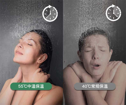 一鍵55℃的中溫保溫功能,這是華帝電熱水器i14021亮眼的創新功能點。傳統電熱水器在使用上存在難以平衡的痛點,譬如等待加熱就需要至少20分鐘的時間,而一直通電的話就未免過于耗電;另外用水量也無法準確估算,每次加熱太多用不完,實在太浪費。