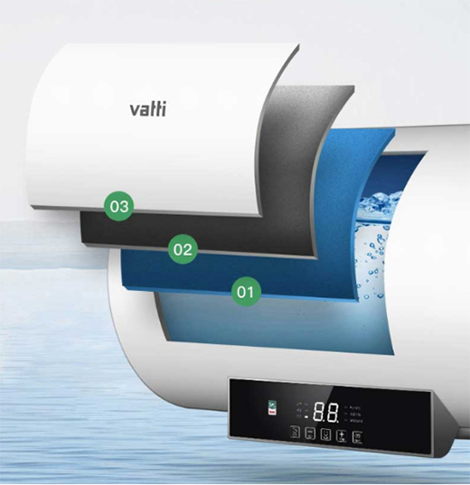 第一重藍晶搪瓷層,通過將藍晶搪瓷涂層均勻噴涂在水箱內膽上,并經過高溫燒結確保涂層耐壓抗沖擊不脫落,它能夠數十年如一日地保護熱水器內膽不受侵蝕,抗拒冷熱水的不斷沖刷,防垢防腐蝕,更耐用;第二重微粉搪瓷融合層,粘合力強,抗腐蝕,抗熱膨脹,并始終與內膽鋼板同步伸縮不脫落;第三重優質冷軋鋼層,厚度達2mm,抗壓能力強。