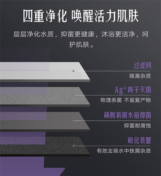 沐浴不僅是為了放松身心,更是保持皮膚健康的必要方式。雖然日常沐浴很多人會使用抑菌沐浴露,但不干凈水質(zhì)造成的皮膚二次污染往往被忽略。云米互聯(lián)網(wǎng)Zero燃?xì)鉄崴髻N心考慮到這一點,配備了過濾網(wǎng)、Ag離子滅菌、磷脫氧銅水箱抑菌、磁化裝置四重凈化,高效隔離水中雜質(zhì),殺菌抑菌達(dá)99.99%,再搭配創(chuàng)新磁化技術(shù),水質(zhì)潔凈,呵護(hù)嬌嫩肌膚,為健康沐浴添一層保障。