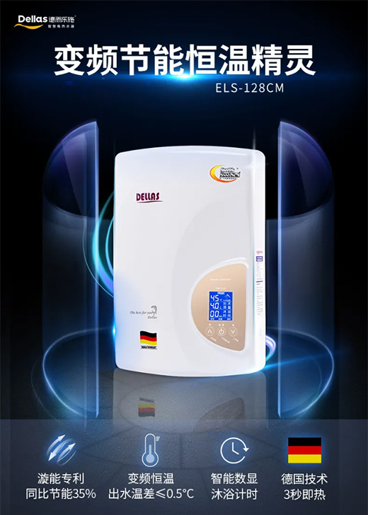 針對用戶反應電熱水器存在的加熱速度慢、水溫不穩定等問題,從而影響沐浴體驗的情況,Dellas德而樂施科研團隊通過多年研發,推出智能恒溫ELS-128CM即熱式電熱水器,在加熱速度變快、出水量不減少的同時,還讓水溫變穩定,拒絕忽冷忽熱,讓用戶盡享酣暢舒適沐浴。