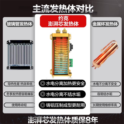 YORK約克智能恒溫即熱式電熱水器YK-DM3,應用了約克自主研發的專利加熱技術“澎湃芯”——無需內膽儲水,冷水進入后被迅即加熱流出,“活水活用”不結水垢;“即開即熱”,無需消耗等待時間,一家人可以接連暢快洗浴。并且熱水器內部在加熱時“水走水路、電走電路”,很好地避免了漏水和漏電的風險,給你十足的安全感。