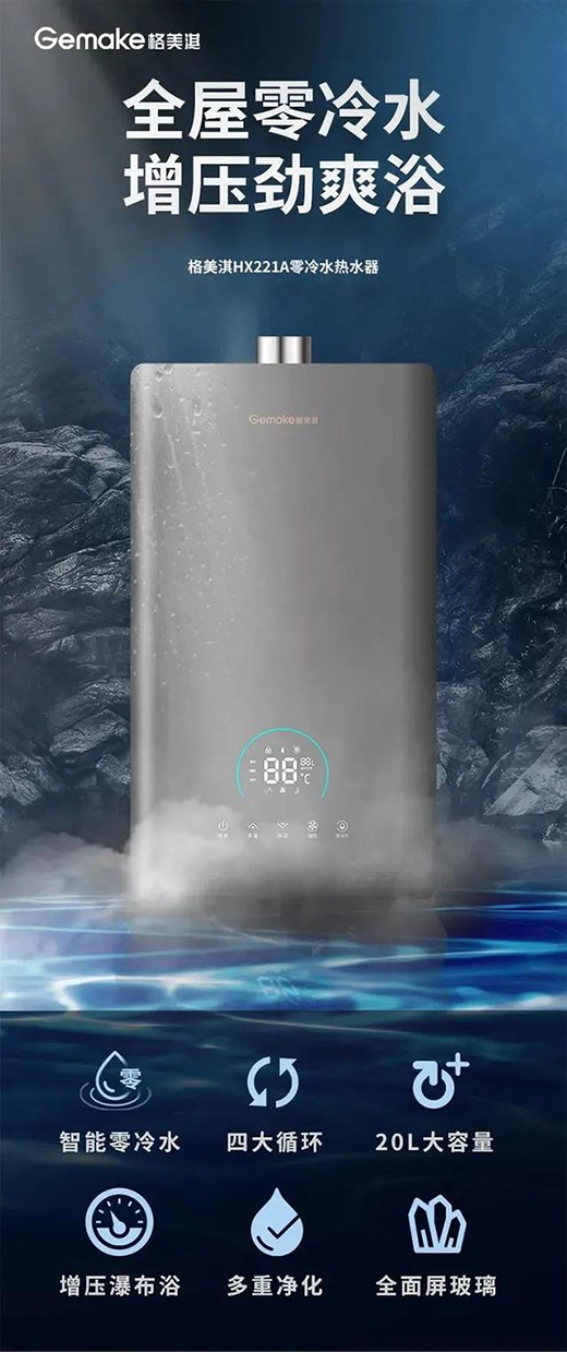 近日,小編了解到,格美淇新推出了一款零冷水燃氣熱水器HX221A,多項硬核黑科技加持,幫助我們解決在日常生活中使用熱水的種種難題,做到熱水零等待、增壓瀑布浴、四重凈化健康洗等,真正為用戶帶來舒適恒溫、健康凈化的多重品質洗浴體驗,滿足用戶在使用熱水器不同場景的體驗需求和品質生活的變化。