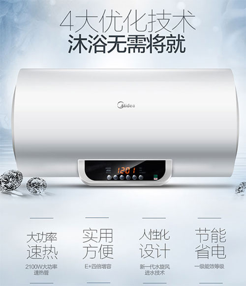 2、E+四倍增容技術智能感應控制內膽中的水溫,當水溫低至15℃時,控制內膽中儲水式加熱管和速熱加熱管交替加熱,延長洗浴時間。