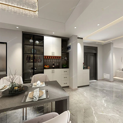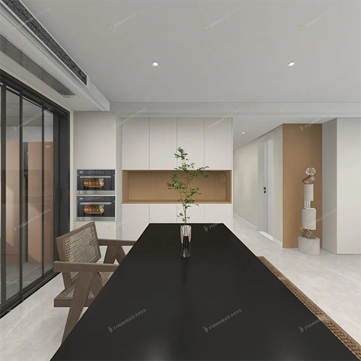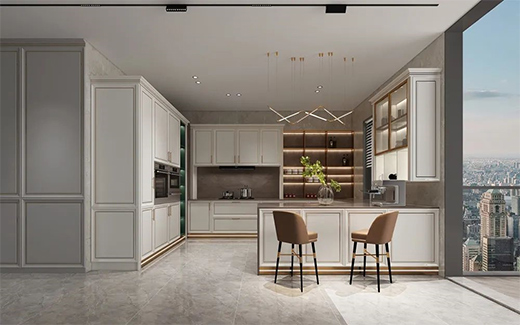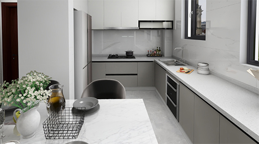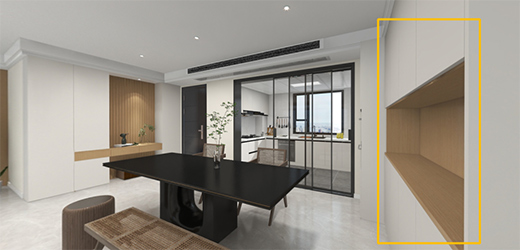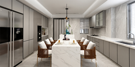 還可以根據(jù)用餐人數(shù)延展櫥柜臺(tái)面代替餐桌,將烹飪區(qū)到餐桌的動(dòng)線縮至最短,既延伸了櫥柜功能,又讓就餐更加方便快捷。