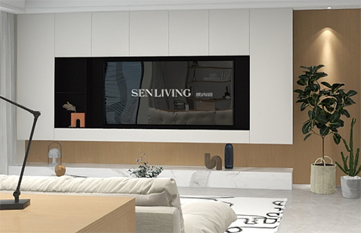 電視柜可以個(gè)性化設(shè)計(jì)制作,底部除了大理石,也可以更換成抽屜,上面是黑白對(duì)比色,回字形電視柜以白色外圍,黑色做內(nèi)嵌,有一定的視覺(jué)擴(kuò)容效果??紤]到放置的東西是沒(méi)有規(guī)律性的,所以封閉式區(qū)域設(shè)計(jì)的多,并做成了無(wú)拉手設(shè)計(jì),更符合客廳觀賞性的需求。中間適當(dāng)留空,可以放軟裝擺件、綠植、書籍、相冊(cè)等,或者不放也是可以的。