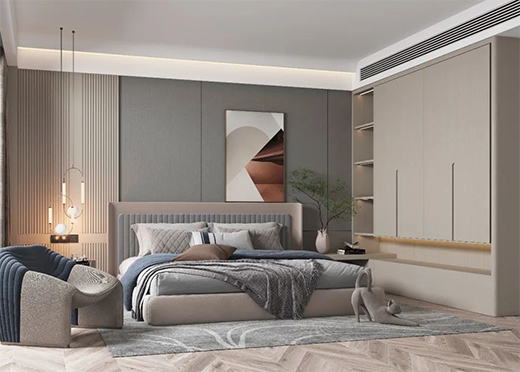 如果不是提前規劃好衣柜位置,無論哪種品牌的成品衣柜,都不會很好的契合已經裝修好的居家環境。尤其是已經做好踢腳線的墻邊,柜體與墻體的間隔更是清理死角!