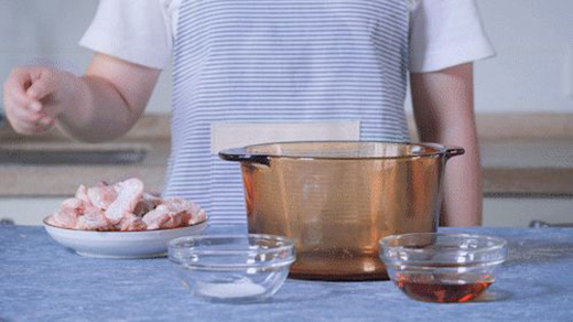 1、半只雞洗干凈,切塊,加入3勺料酒和半勺鹽腌制20分鐘;