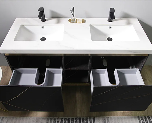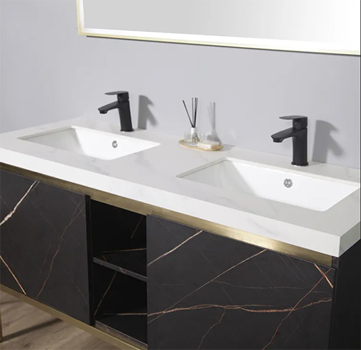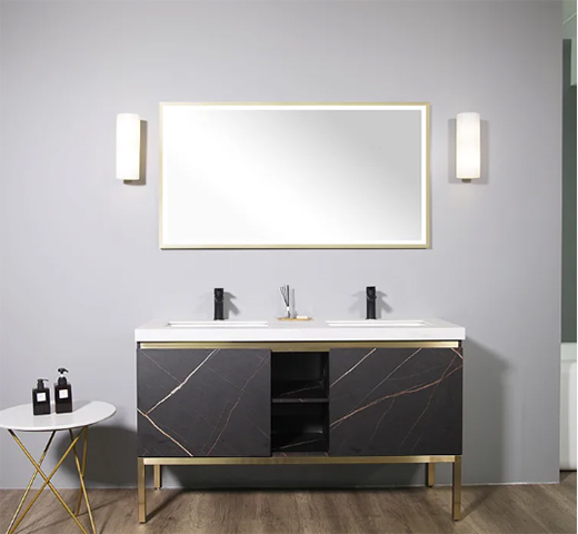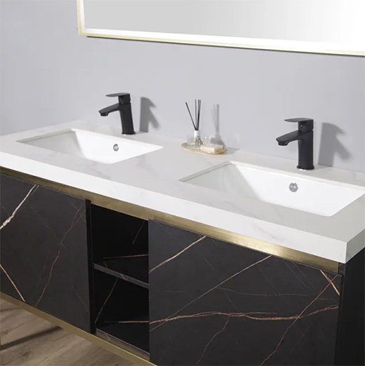 浴室柜的柜門采用勞倫黑金免漆板,