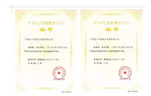經(jīng)廣東省高新技術(shù)企業(yè)協(xié)會認(rèn)證專家組的嚴(yán)格審核,廣東超人節(jié)能廚衛(wèi)電器有限公司生產(chǎn)的集成灶燃?xì)庠頙JZTC-X8、家用燃?xì)饪焖贌崴鱆SQ25-XH、家用燃?xì)庠罹逬ZT-808和JZT-888A四款系列產(chǎn)品被認(rèn)定為“廣東省高新技術(shù)產(chǎn)品”。2020年4月14日,四項(xiàng)高新技術(shù)產(chǎn)品證書已經(jīng)正式頒布下發(fā)。