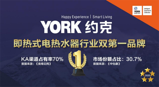 據了解,目前YORK約克品牌及產品已全面覆蓋全國一線市場和大部分二三級市場,KA渠道占有率超70%,恒溫即熱式電熱水器銷量持續三年保持全國第一(中怡康、奧維云網市場調查數據報告),2019年主營產品全面納入蘇寧集團自主品牌、蘇寧零售云的頭等艙品牌,目前全國家電連鎖渠道門店數量超3600家,自營渠道門店超7000家,全國開設了86個“約克家立方智能廚衛體驗館”,并在中山和嵊州建立了配套完善的產品研發中心和生產制造中心。近5年來,YORK約克品牌憑借著持續的技術創新、過硬的產品質量、良好的售后服務以及線上線下全渠道運營的發展方針,實現了2016-2019年連續4年業績保持連年翻番的成績,即使是2020年度面臨新冠疫情極端惡劣的市場環境下,仍然做到15%小幅增長,年銷售業績保持3億元以上。