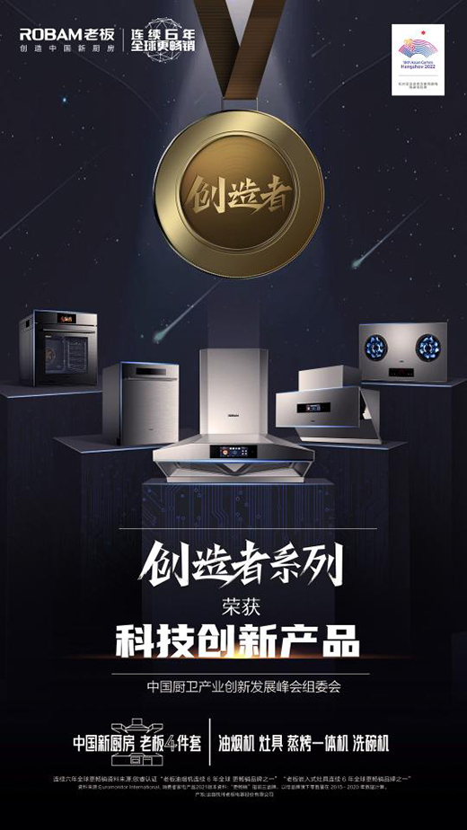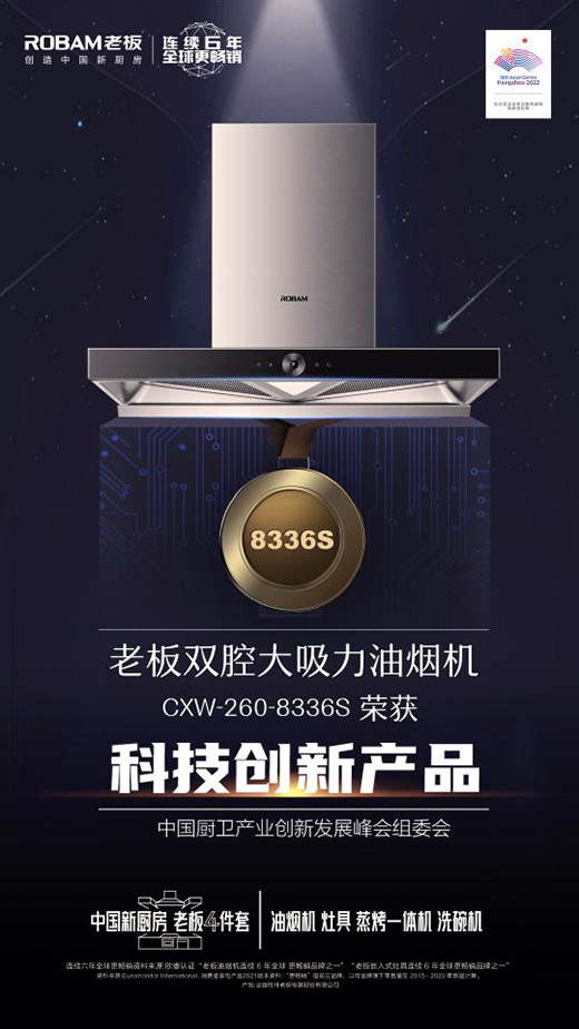 行業的發展離不開頭部品牌的引領示范,也離不開中堅品牌的創新和開拓。本次活動還對在科技創新、品牌影響等層面具有突出表現的企業進行表彰。其中,老板電器一舉斬獲2021中國廚衛行業十大影響力品牌,旗下“創造者系列”套系產品以及8336S雙腔吸力油煙機雙雙榮獲科技創新產品獎,再次彰顯了行業龍頭的綜合實力。