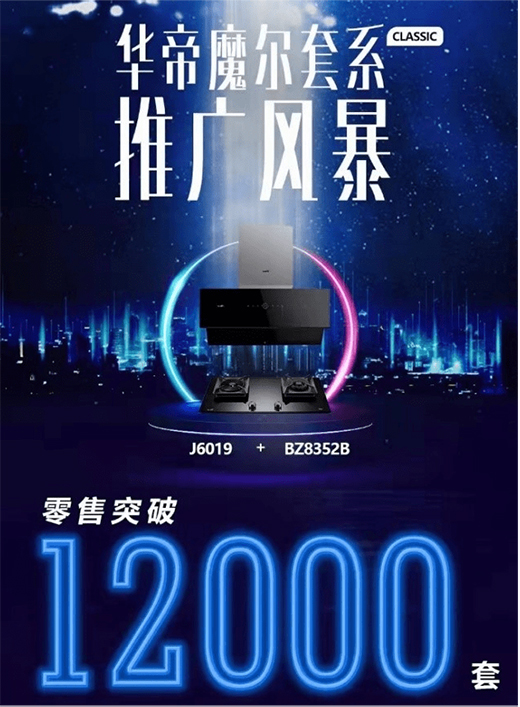酷炫的一體化設(shè)計(jì)不僅讓華帝魔爾套系俘獲了不少年輕用戶的芳心,同時(shí)也為整個(gè)廚電行業(yè)打開(kāi)了高端增量市場(chǎng)。據(jù)華帝2021年銷(xiāo)售戰(zhàn)報(bào)顯示,華帝魔爾套系推廣風(fēng)暴實(shí)現(xiàn)魔爾套系J6019+BZ8352B零售銷(xiāo)量突破12000套。