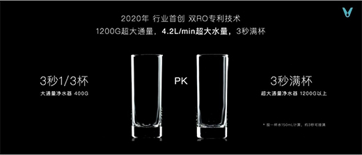 ?傳統凈水器普遍存在出水量太小的通病,對此,云米在2020年率先推出雙RO專利技術,以1200G超大通量,4.2L/min超大水量,實現3秒滿杯,解決出水量小的難題。2022年,云米凈水器在通量上又?次實現飛躍性的升級,再次突破流速天花板。