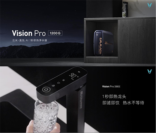 ?除了Super2 2000G云米·泉先AI凈水器,云米還推出Vision Pro 1200G云米·泉先 AI 1秒即熱凈水器。一直以來,中國?喝熱水的需求沒有被很好的滿足,泡咖啡沒有熱水;吃火鍋忘提前煮水;沖奶粉水溫不準,需要反復兌溫;在冬天洗菜冰冷凍;燒水晾涼,至少要等20分鐘等問題時常發生……而Vision Pro 1200G云米·泉先 AI 1秒即熱凈水器,以1秒即熱龍頭即濾即飲,熱水不等待,完美解決中國人對于熱水的日常生活需求。除了1秒即熱功能,更使用高端數顯龍頭,實現每1℃精準調溫。