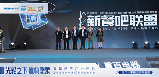 10月27日,一場由老板電器和重百電器聯合舉辦的“光輪之下·重構想象”萬物皆可旋轉烤全場景發布會圓滿落幕, 老板電器營銷副總裁徐偉達、重百電器事業部總經理胡宏偉,司米廚柜高級營銷總監李軍,重慶市暖通協會秘書長袁建明,老板電器蒸烤產品線總監 扈國威,老板電器重慶營銷中心總經理孫江偉等出席。